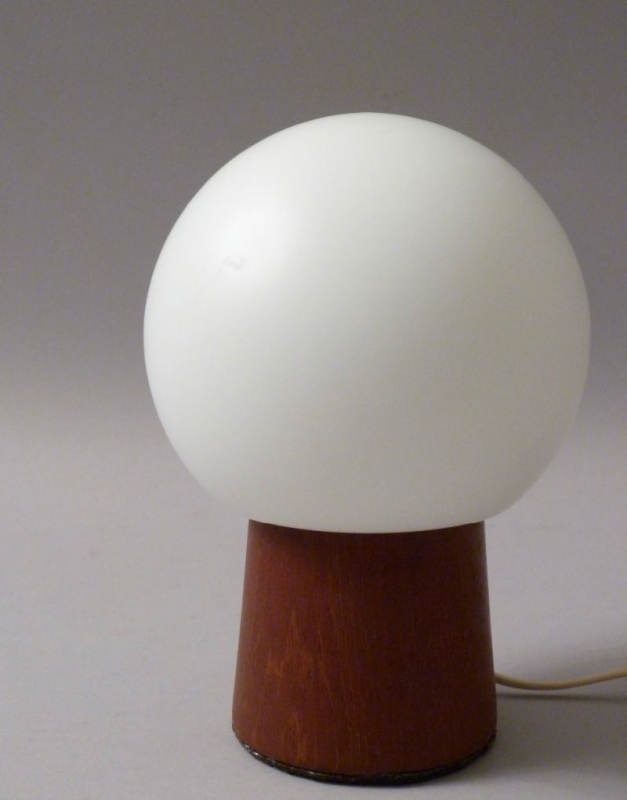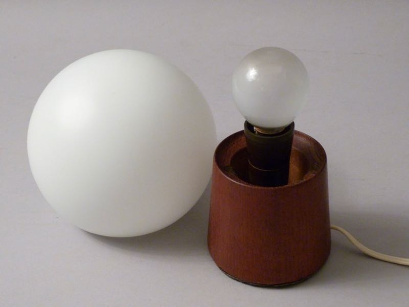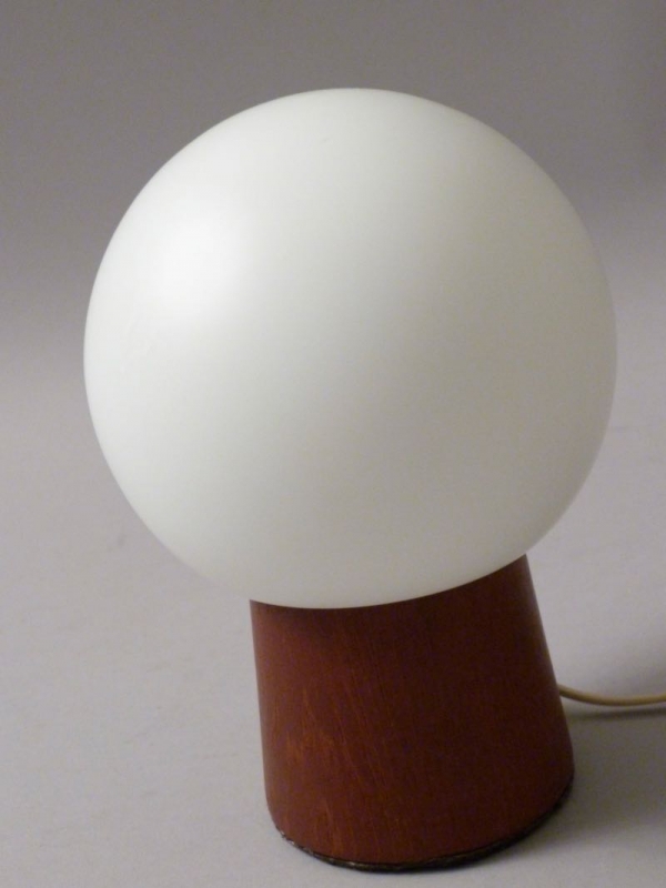 …..kleine vintage Tischlampe, 50er/60er Jahre….. Stand aus Teakholz, runder opaliner Glasschirm Gesamthöhe 18cm eine E 14 Fassung guter vintage Zustand verkauft/sold
