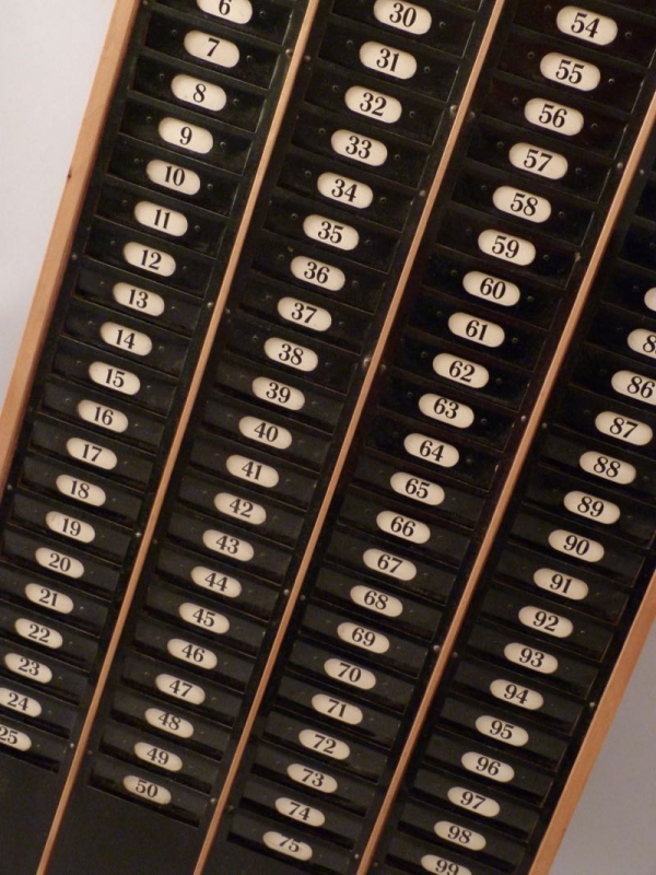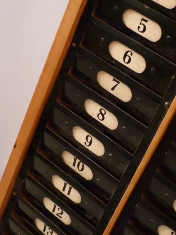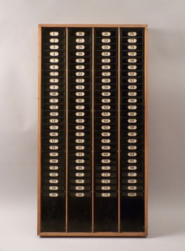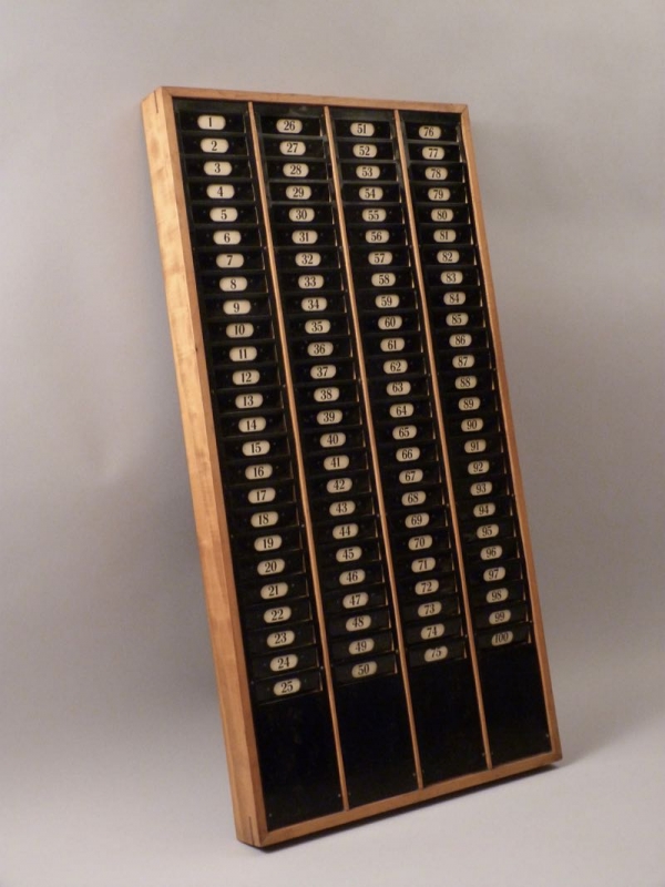 Holzrahmen, Front aus Metall, Fächer nummeriert 1-100