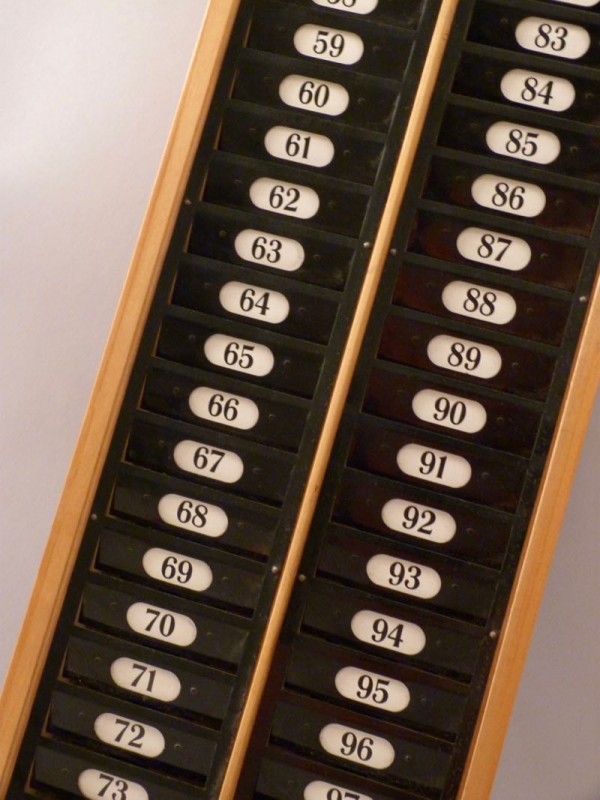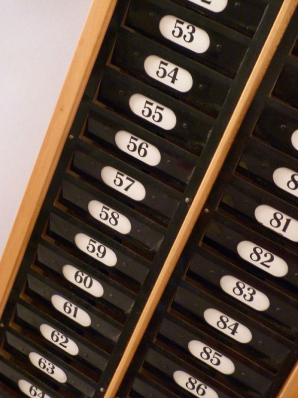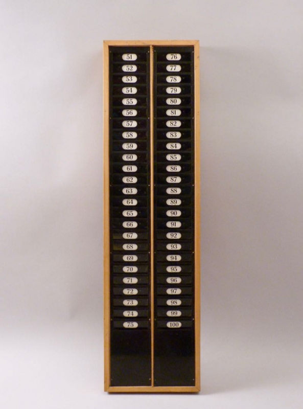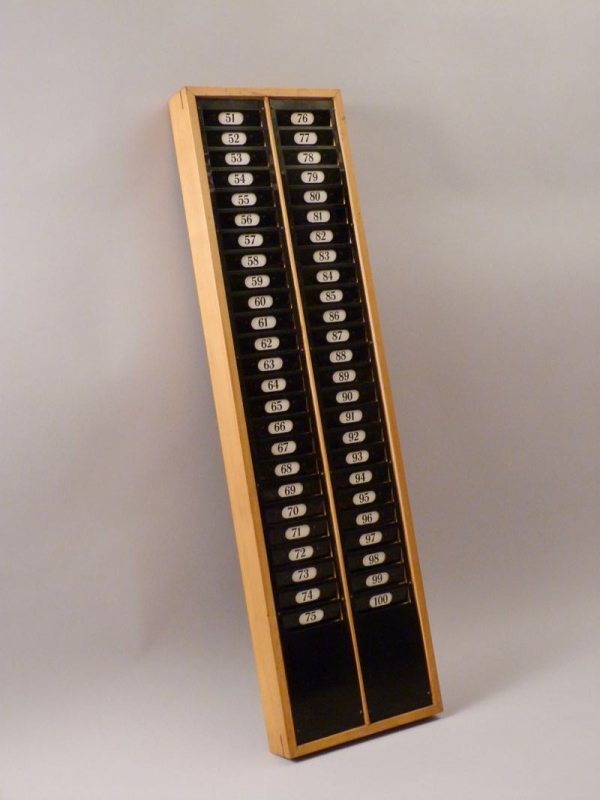 Holzrahmen, Front aus Metall, Fächer nummeriert 51-100