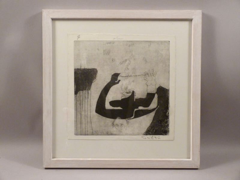 UWE LINDAU 1950 Groß-Barnitz Radierung, ohne Titel Blattgröße 26 x 26cm rechts unten signiert hinter Glas gerahmt, 38.5 x 38.5cm normale Altersspuren verkauft/sold