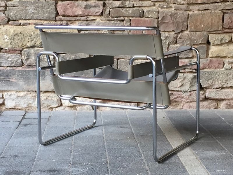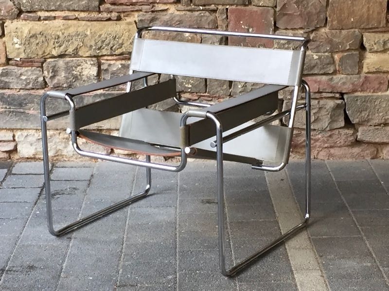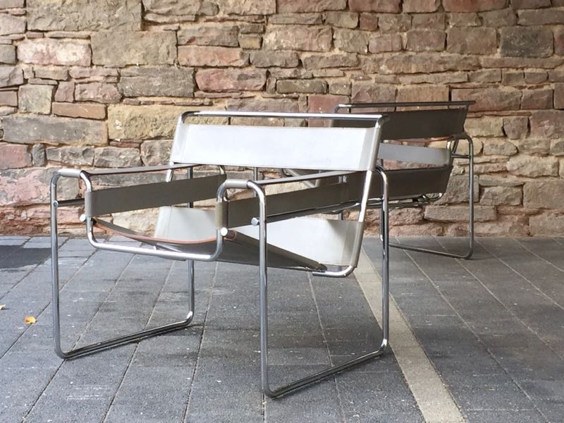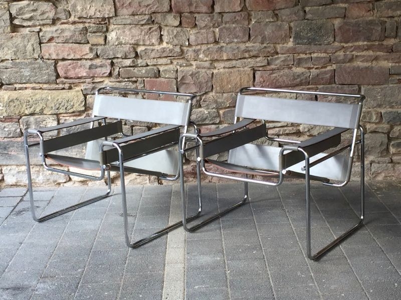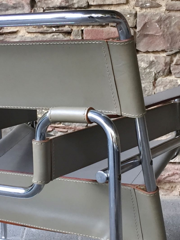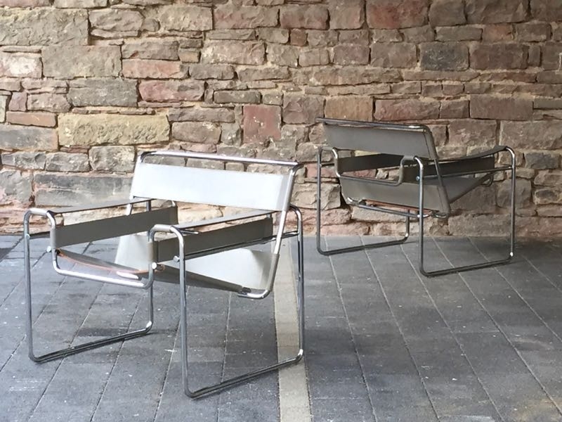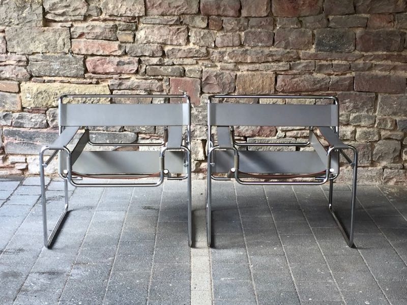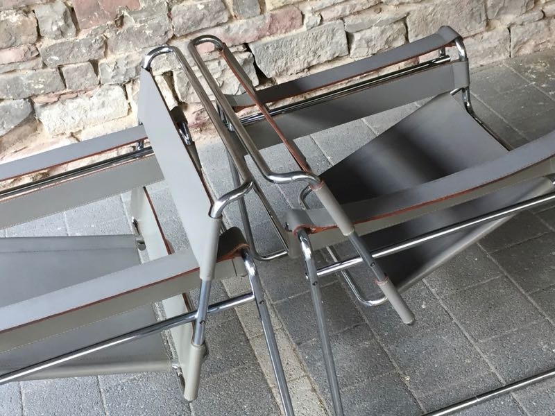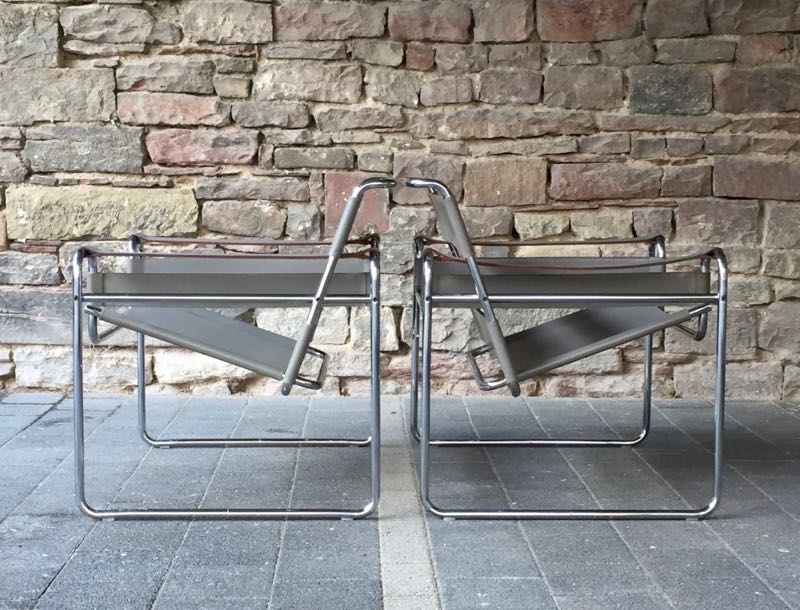 …..Paar vintage MARCEL BREUER Wassily Chairs, Gavina Italy 60er Jahre….. verchromter Rundstahl, dunkelgraues Leder HxBxT: 74 x 79 x 71cm, Sitzhöhe ca. 40cm an der Lehne bezeichnet “Marcel Breuer” guter vintage Zustand, schöne Patina verkauft/sold