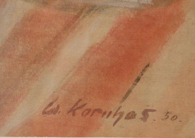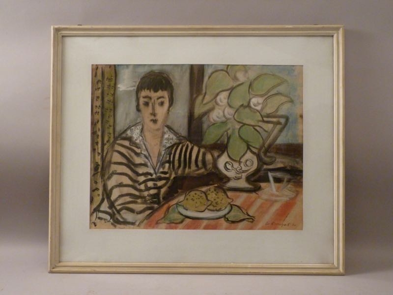 …..WERNER KORNHAS, Zeichnung von 1950, Stillleben mit Frau…..