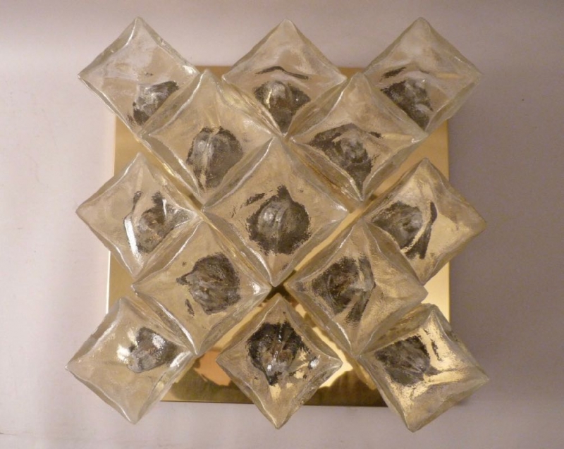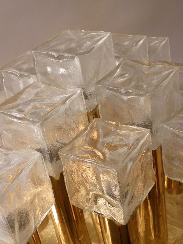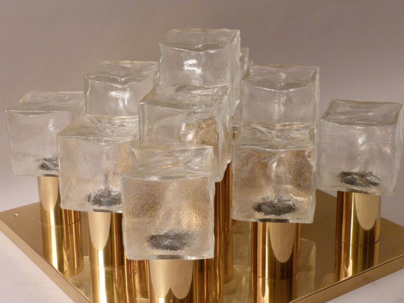 …..vintage XXL KALMAR Ice Cube Deckenlampe, Franken AG 60er Jahre….. Messingbasis, 46.5 x 46.5cm 13x E14 Fassungen gesteckte Glaswürfel Gesamthöhe ca. 30cm guter Zustand, normale Altersspuren verkauft/sold