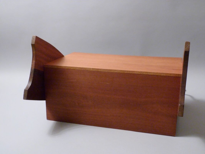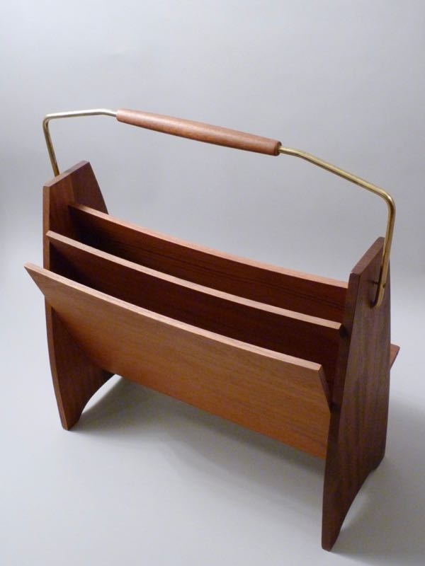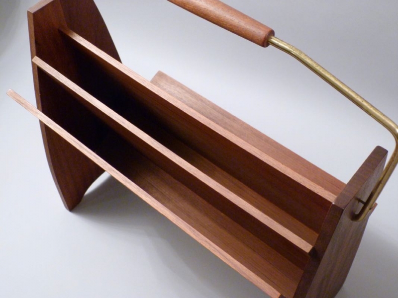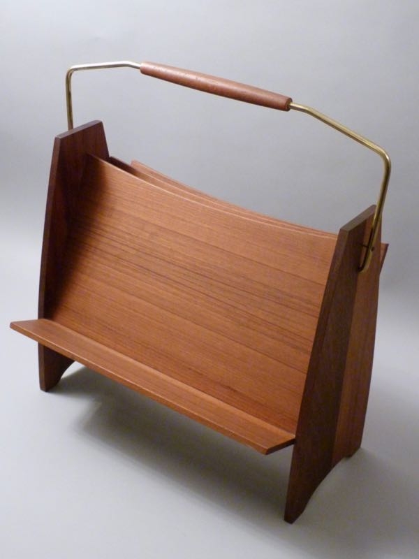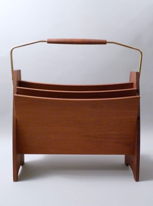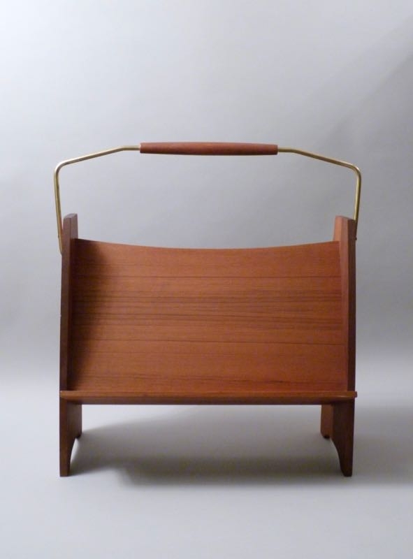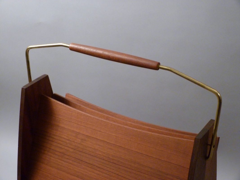 aus Teakholz, massiv und furniert, Messingbügel